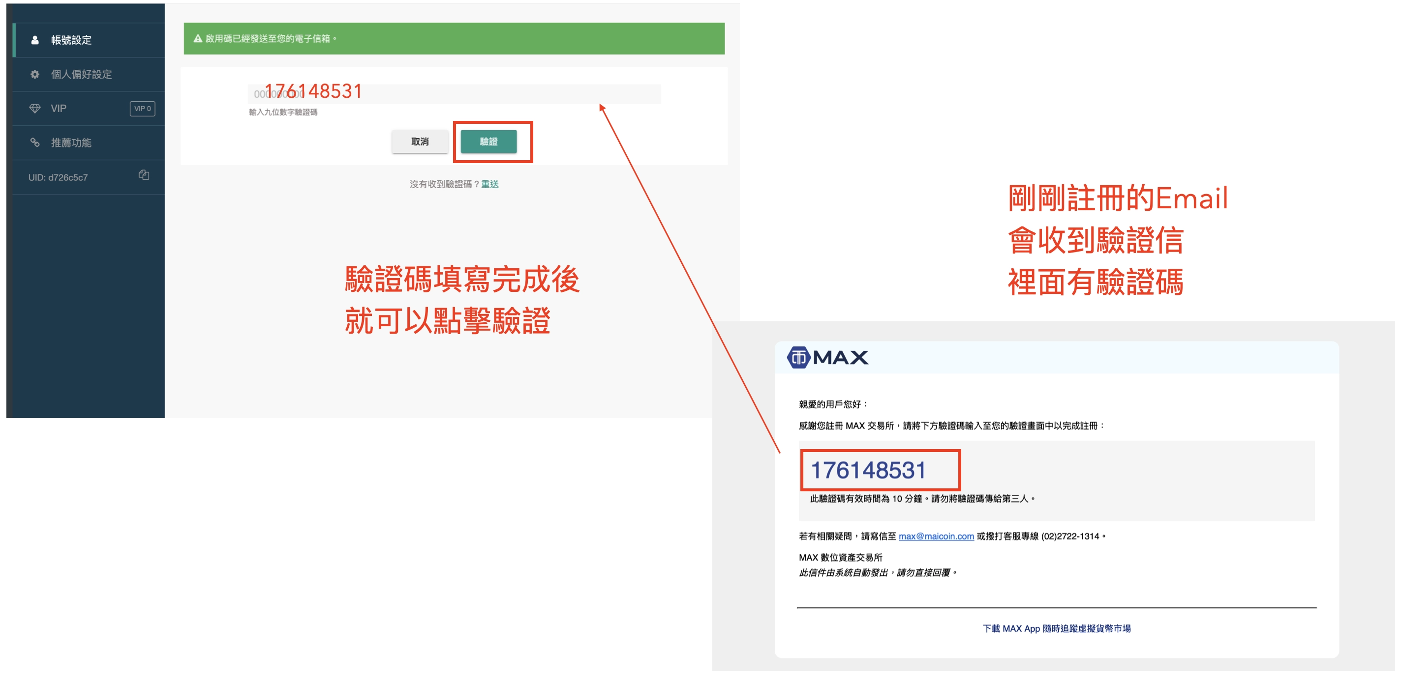 再來完成上一步後,現在就是做初步的帳號驗證囉~