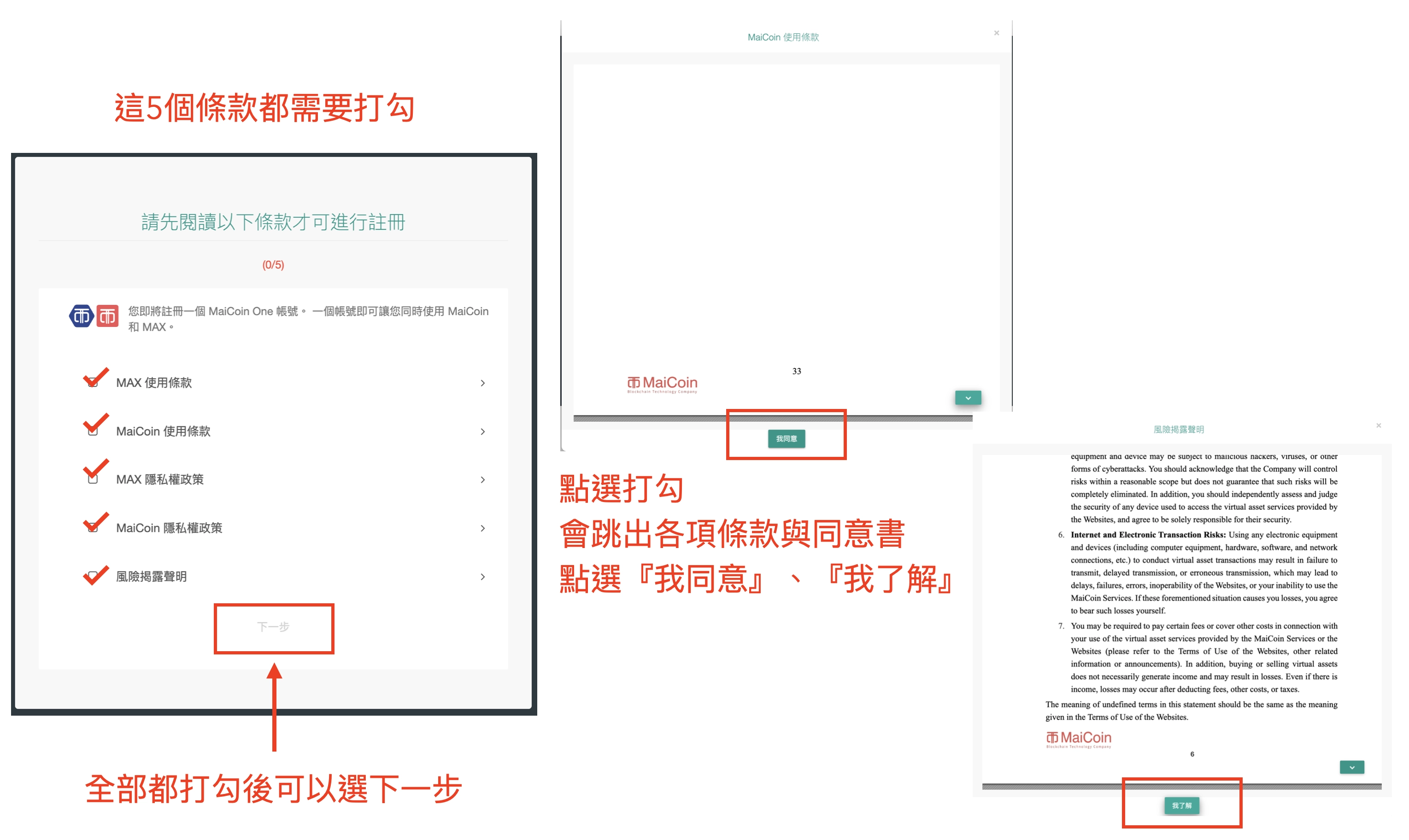 開戶教學 Step. 3 - 同意聊款與聲明