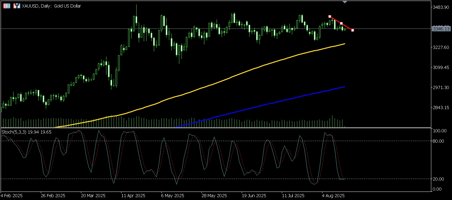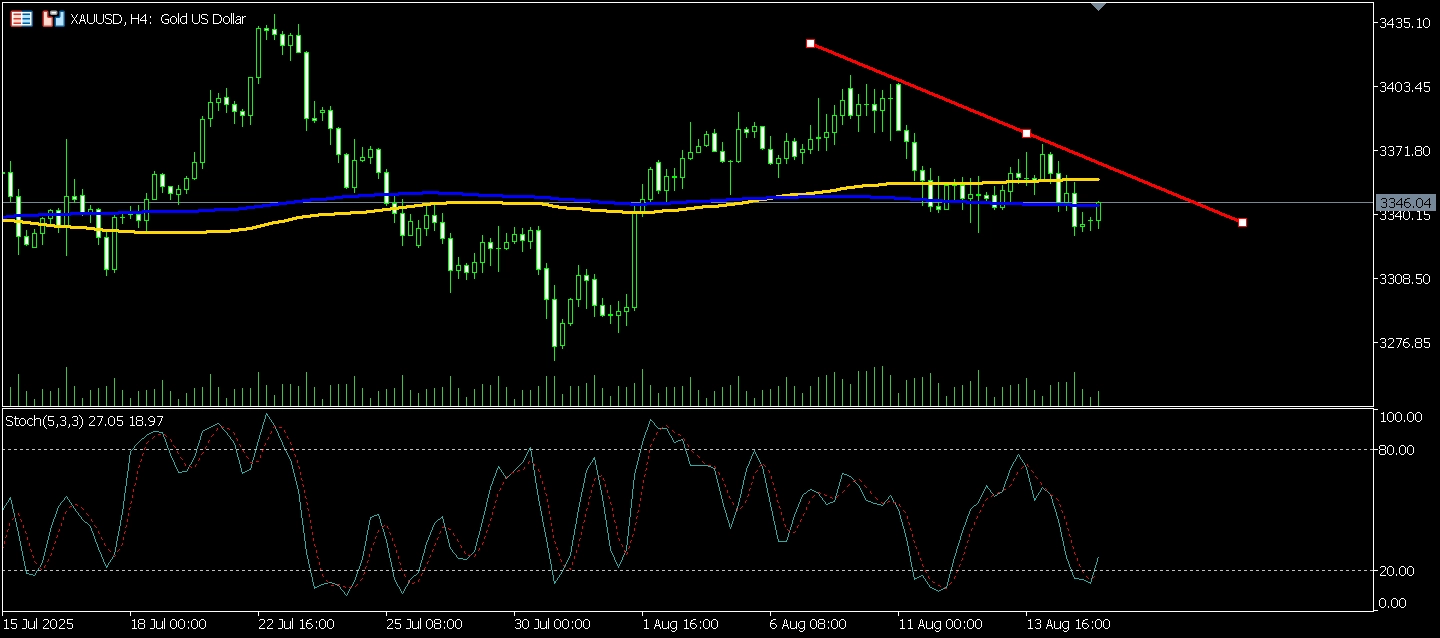 目前黃金價格站上下方趨勢線,顯示上漲趨勢線力道依舊在