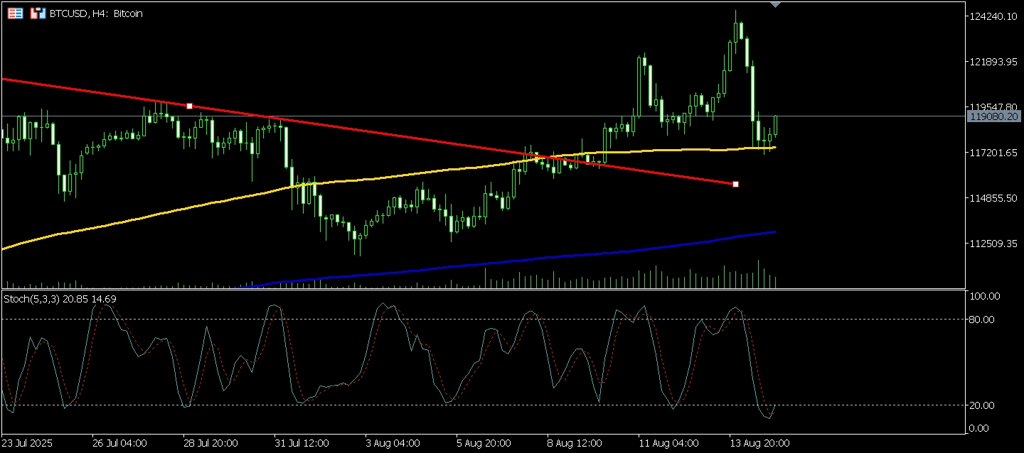 比特幣BTCUSD四小時重點一 : 長均線與短均線
