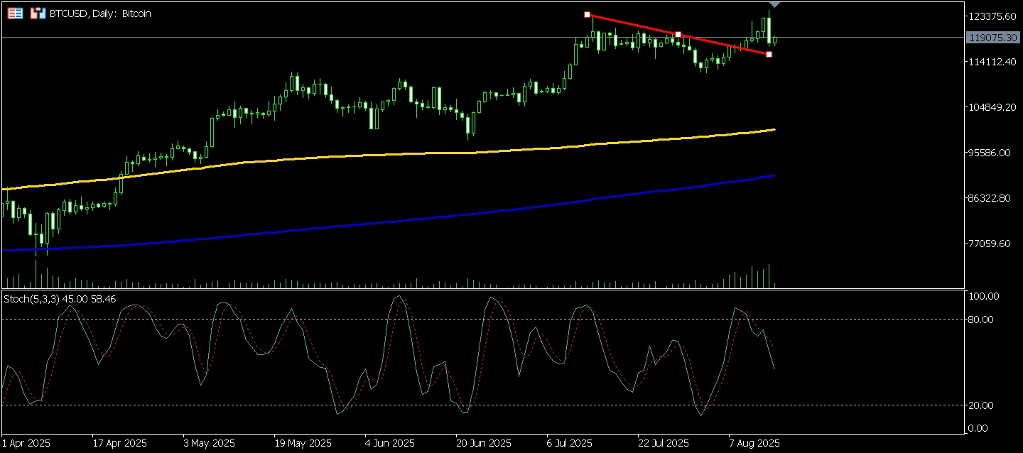 目前比特幣價格漲過下降趨勢線,買方力道加強