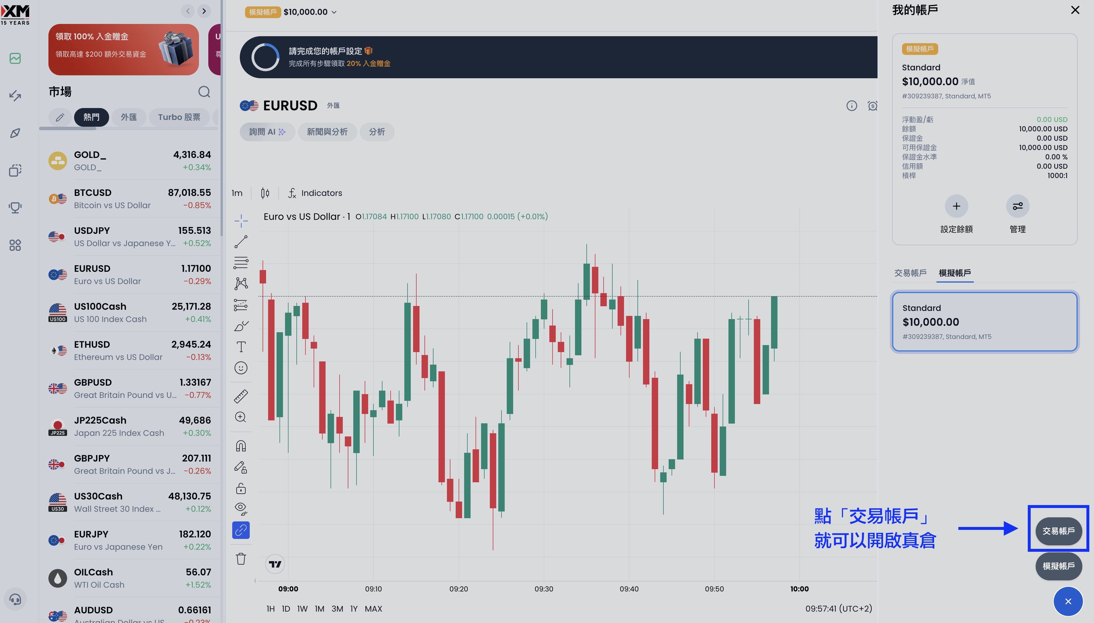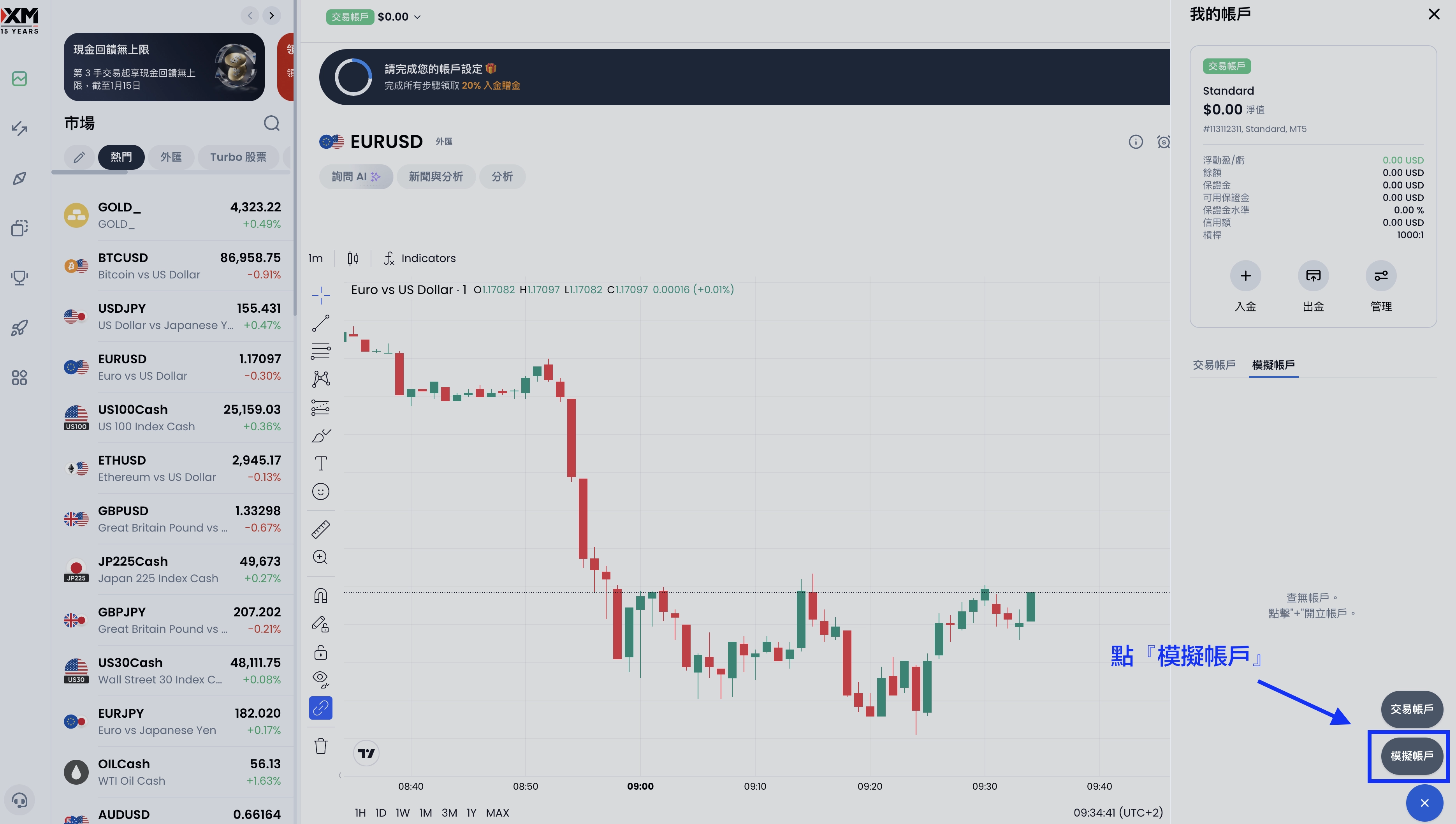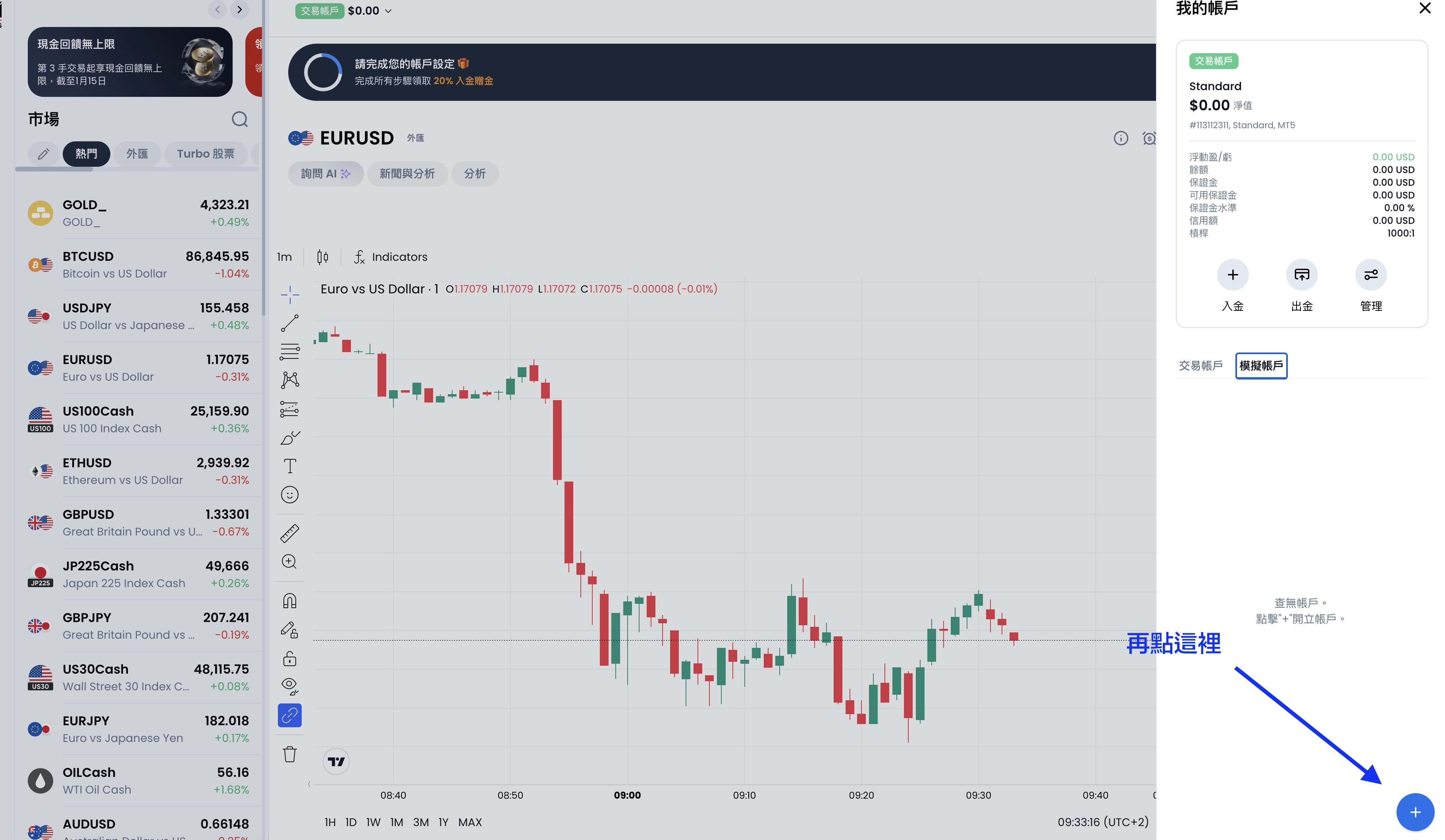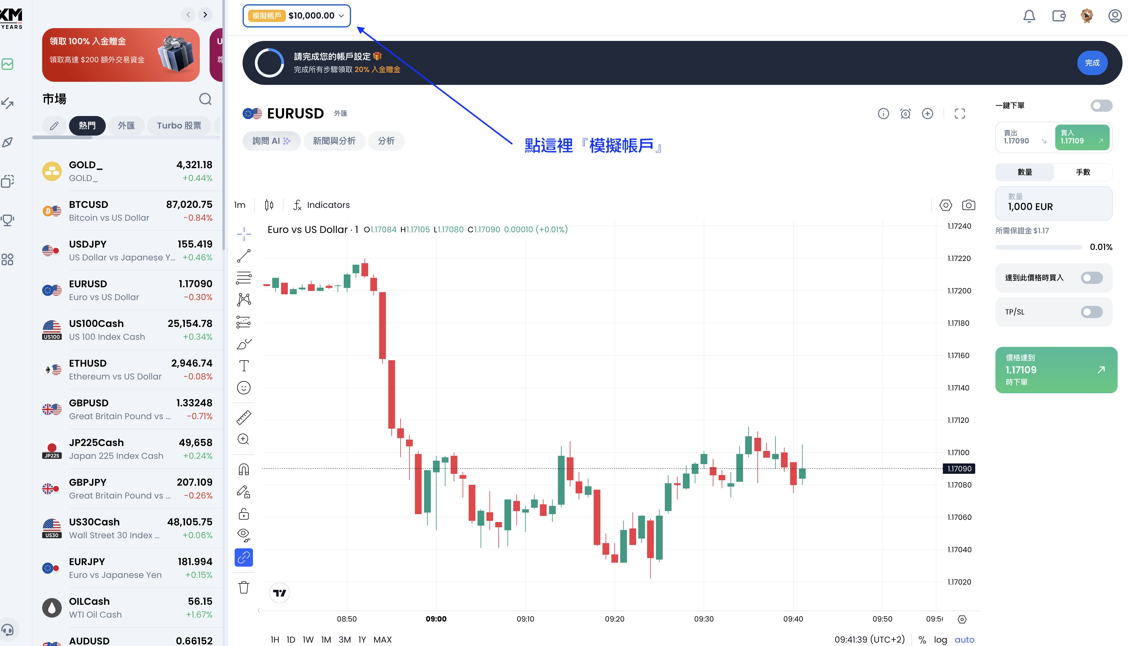 一樣先點擊上方的『模擬帳戶』