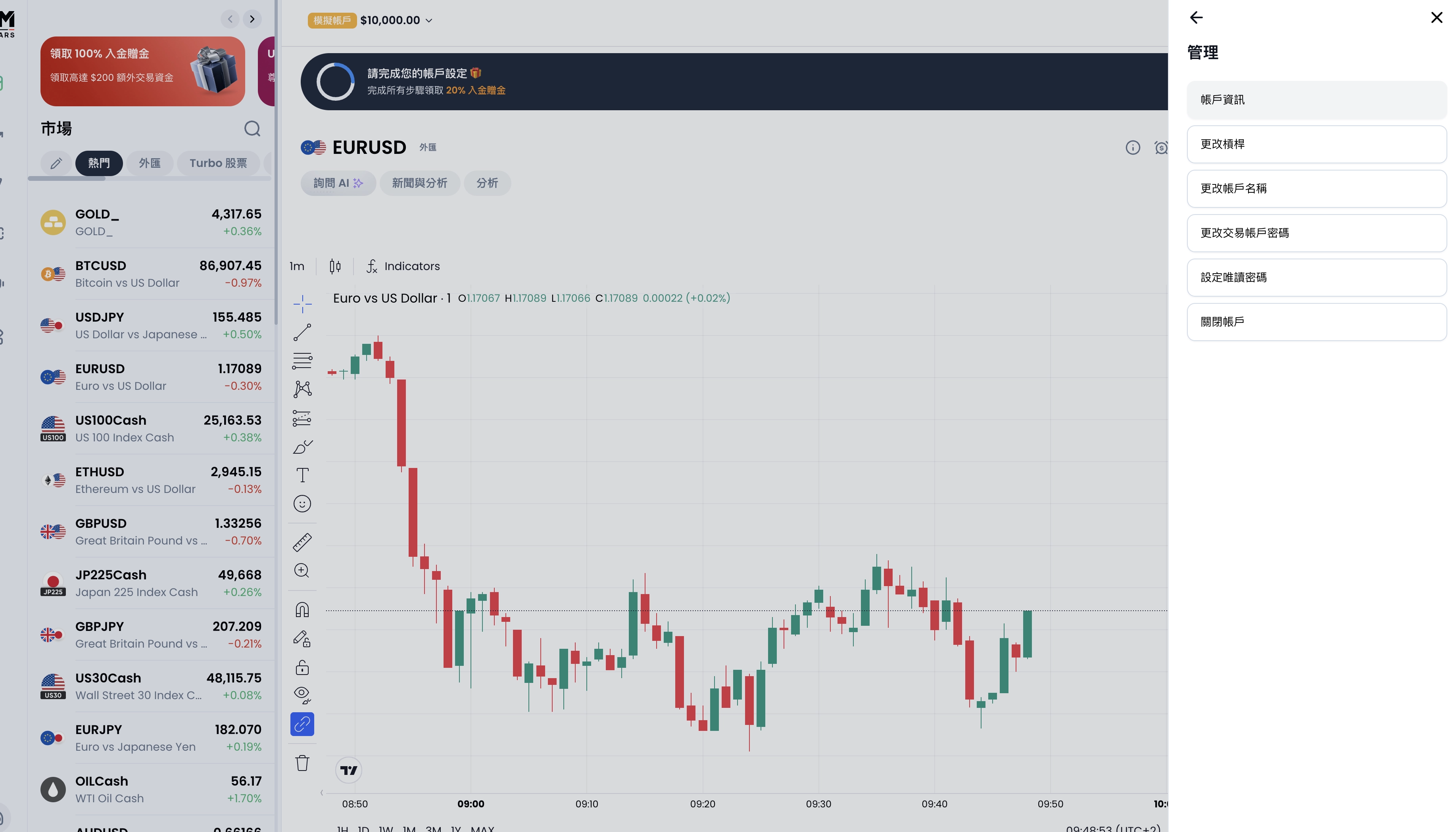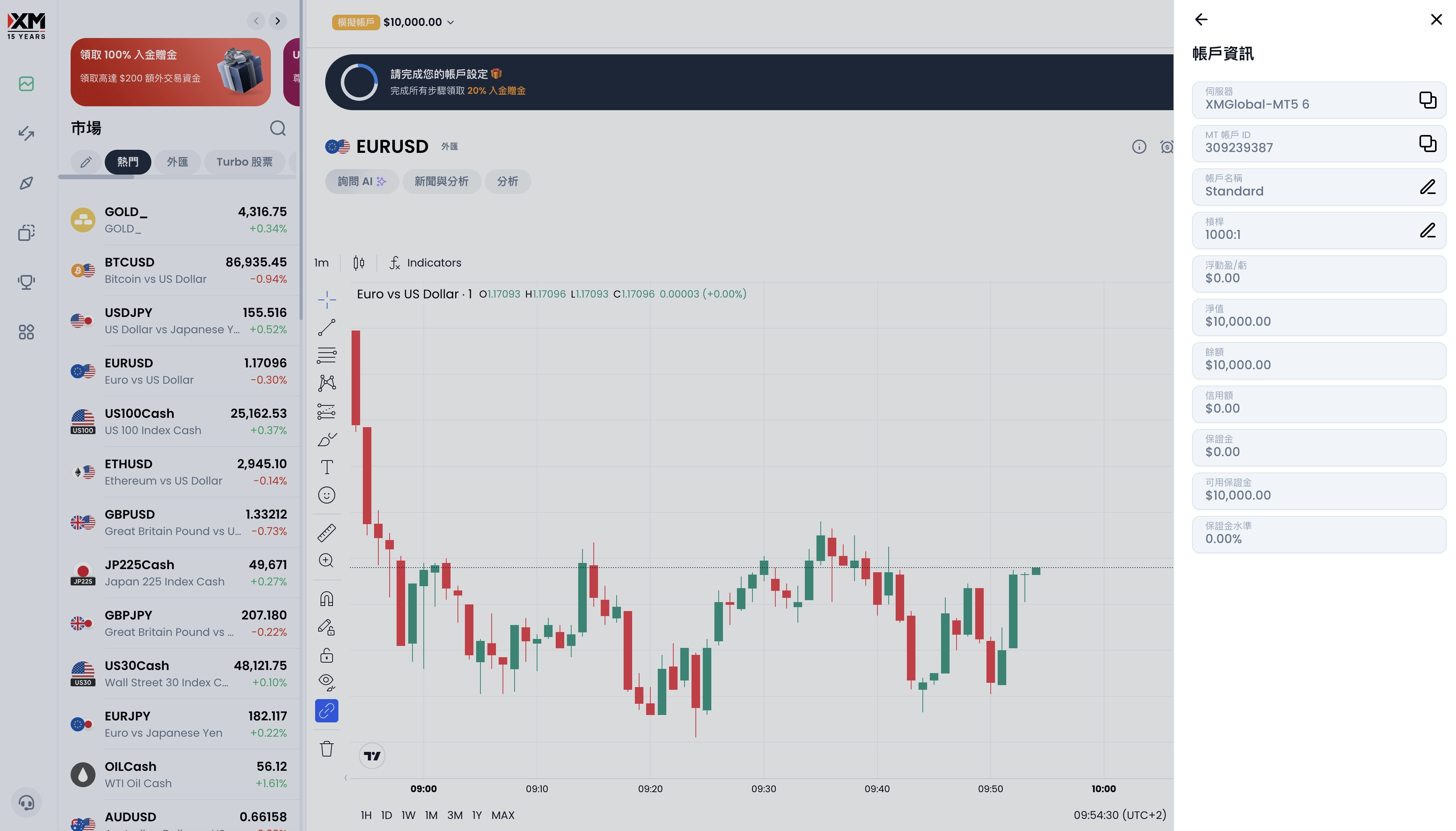 這時候整個畫面就變成模擬帳戶的資訊了。