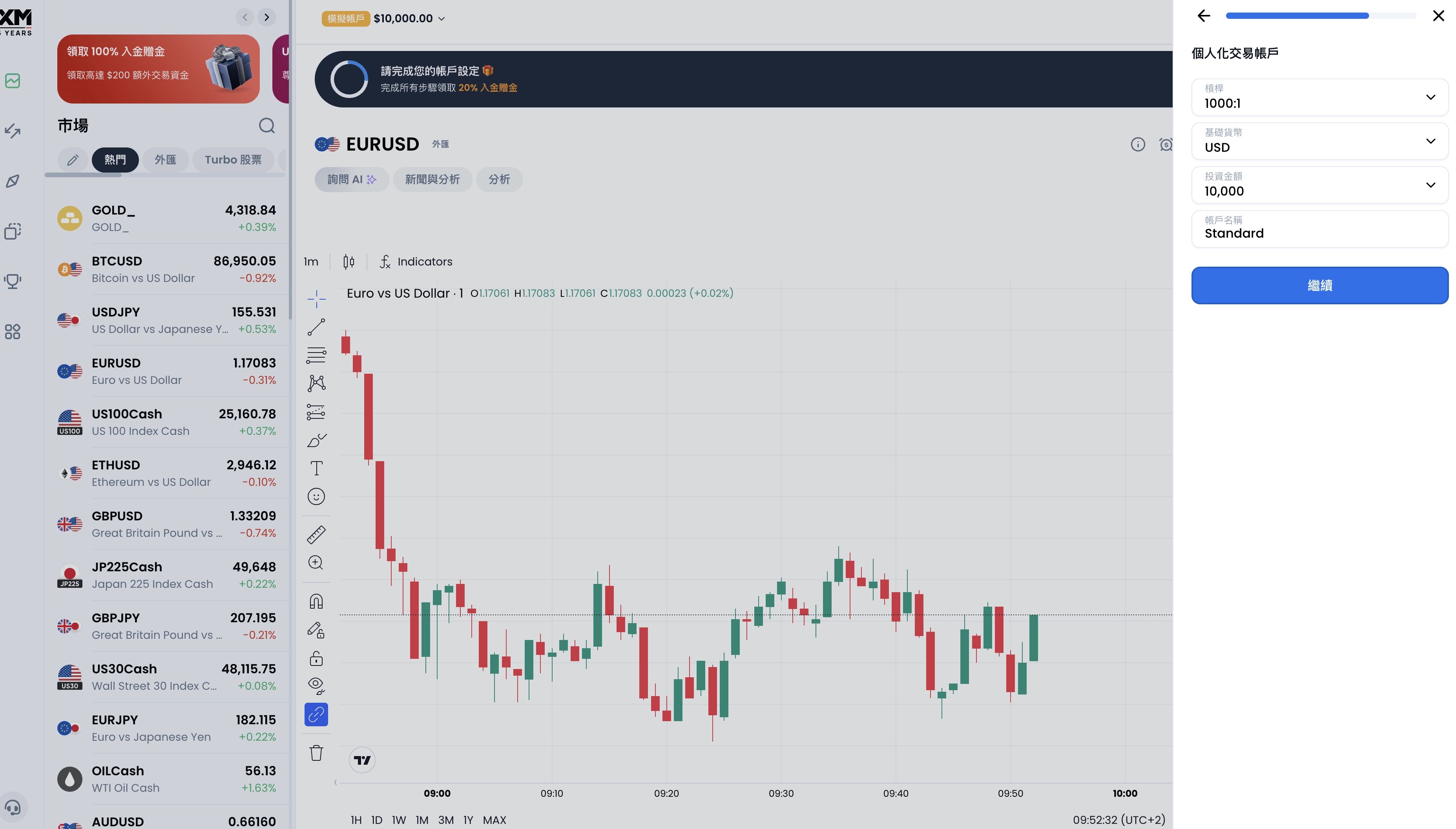 點擊之後就會到設定交易帳戶的環節