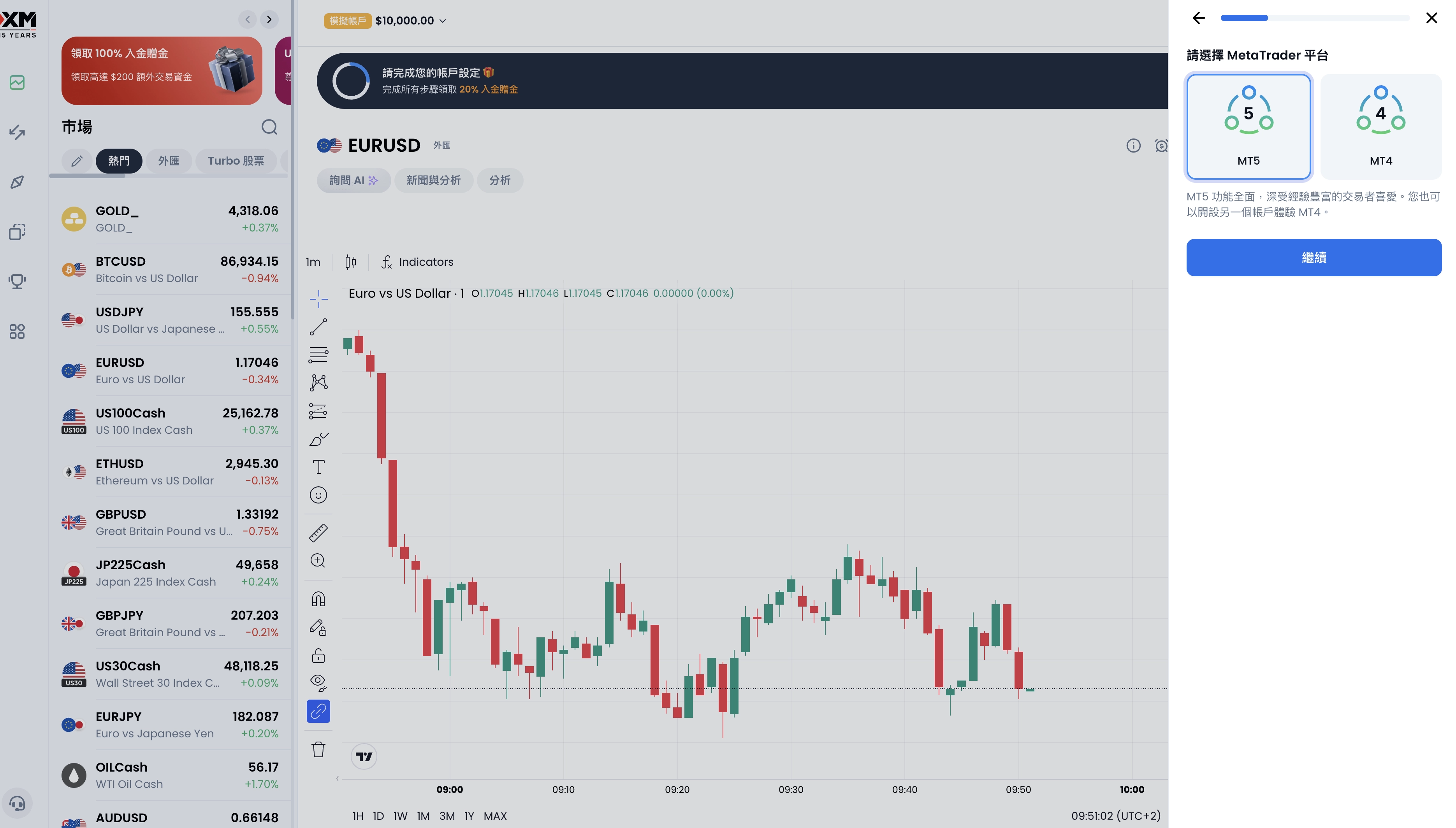 XM Global 外匯交易券商模擬倉登陸MT5