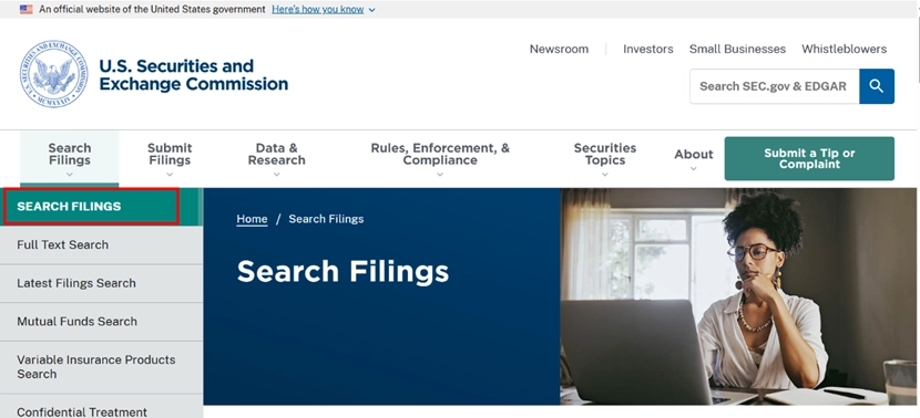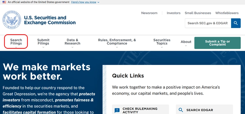 第三步 美股買賣- 【Search Fillings】的選項點擊