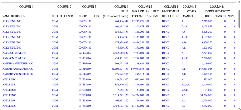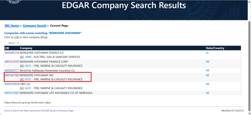 接下來會看到很多關於波克夏這間公司的報表,我們可以找尋 SIC 6331 的部份,點擊進去觀看