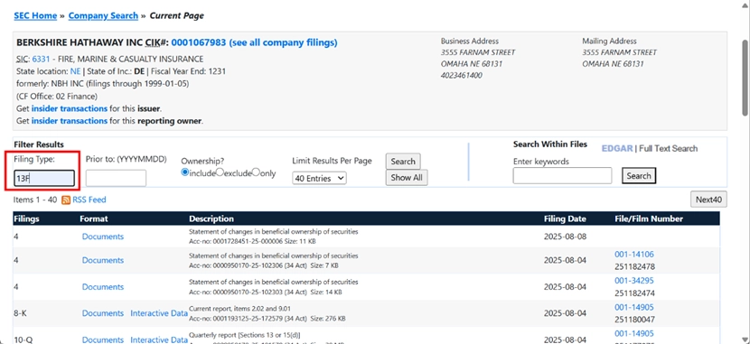 首先,我們可以前往美國證券交易委員會(EDGAR)的官方網站。這是一個可以查閱上市公司財務報告和其他相關文件的重要資源。通过這個網站,你可以追蹤巴菲特及其公司伯克希爾·哈撒韋(Berkshire Hathaway)的最新動向和持股情況。跟隨這些信息,或許能夠更加深入地了解巴菲特的投資策略和思維方式。趕快行動起來,開始追蹤吧!