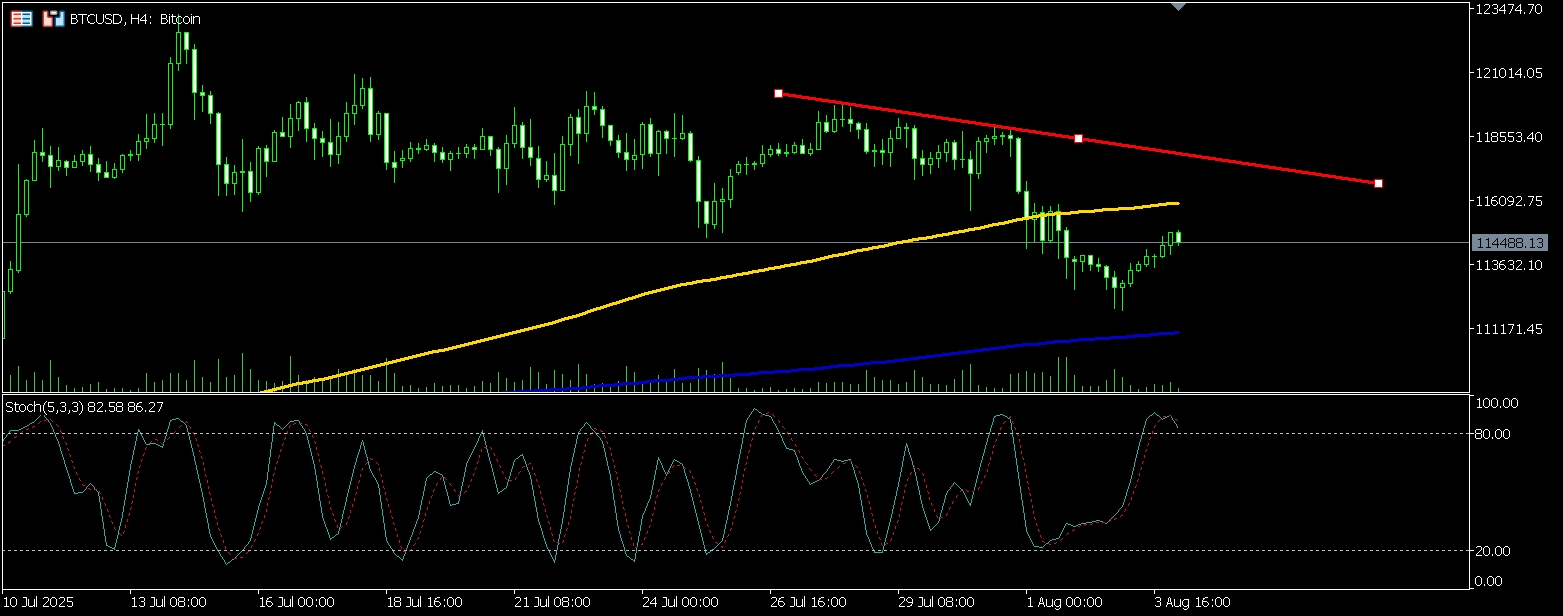 比特幣BTCUSD四小時重點一 : 長均線與短均線
