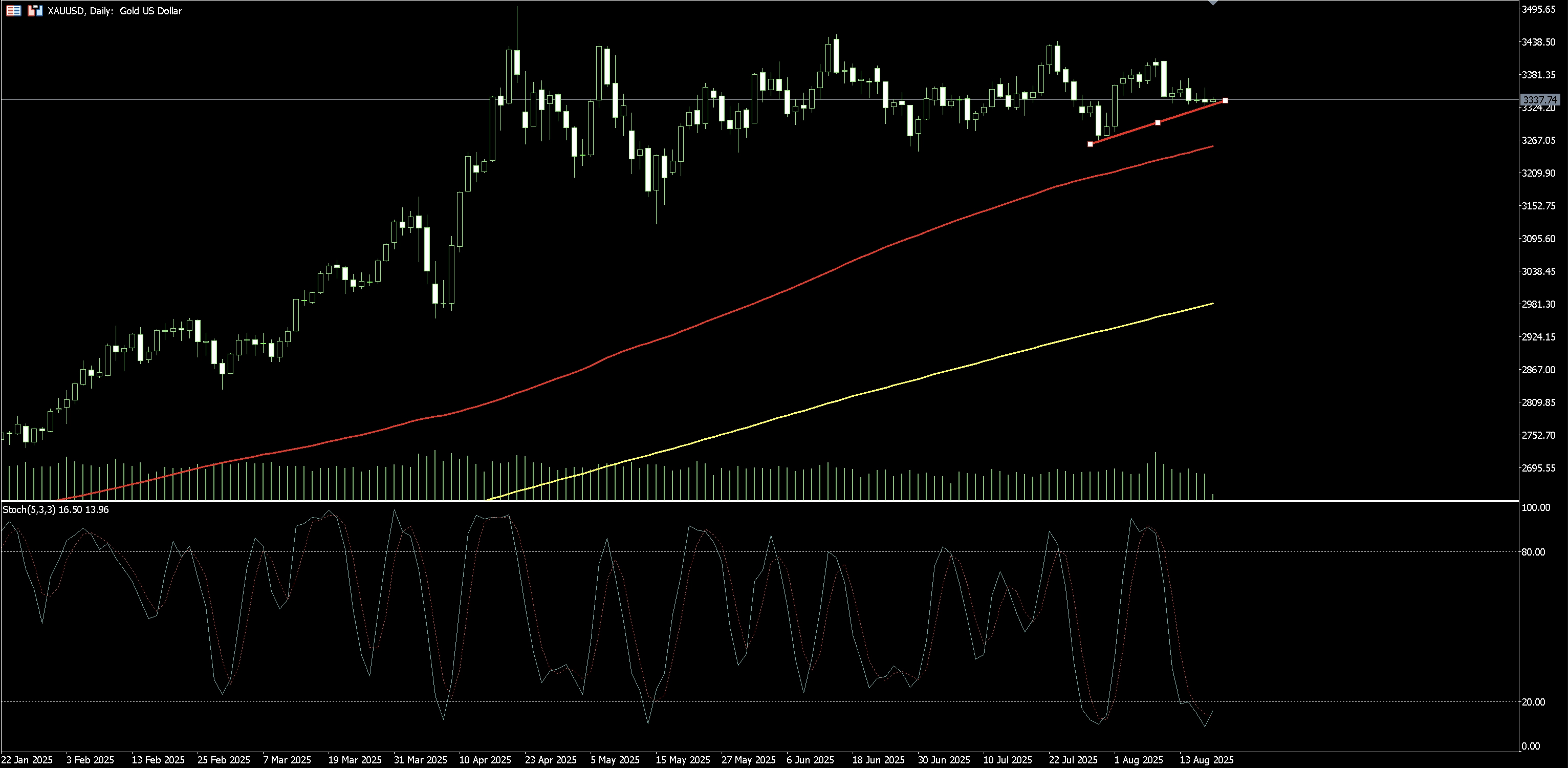 黃金Gold日線重點三: 趨勢線