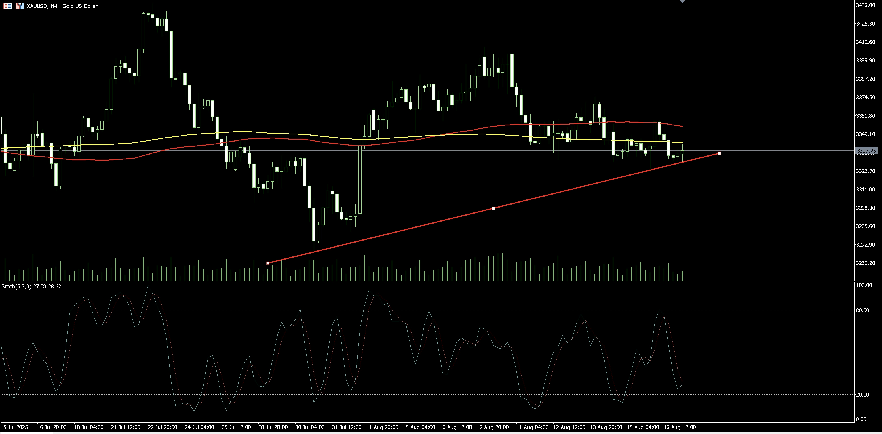 黃金Gold四小時重點三: 趨勢線