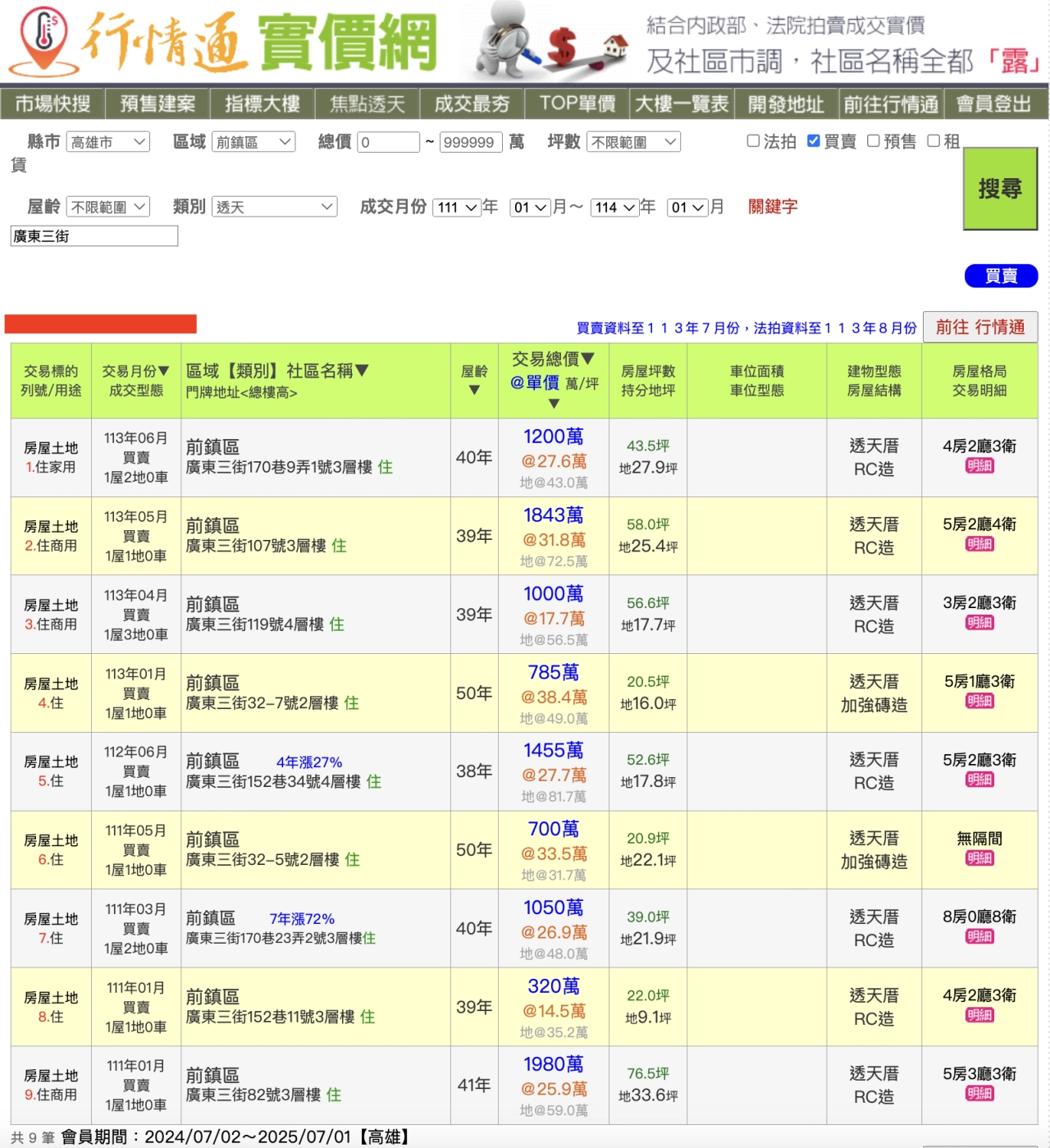 實價登錄資訊